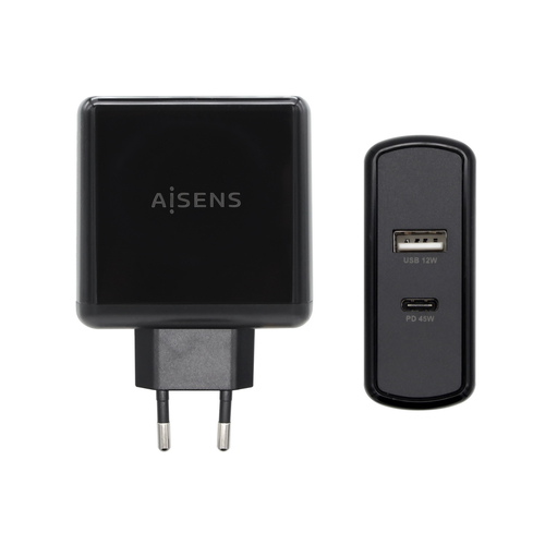 Aisens Asch-2Pd45A-Bk Cargador De Dispositivo Móvil Gps, Mando Para Videojuegos, Mp3, Mp4, Teléfono Móvil, Portátil, Smartphone, Tableta Negro Corriente Alterna Carga Rápida Interior
