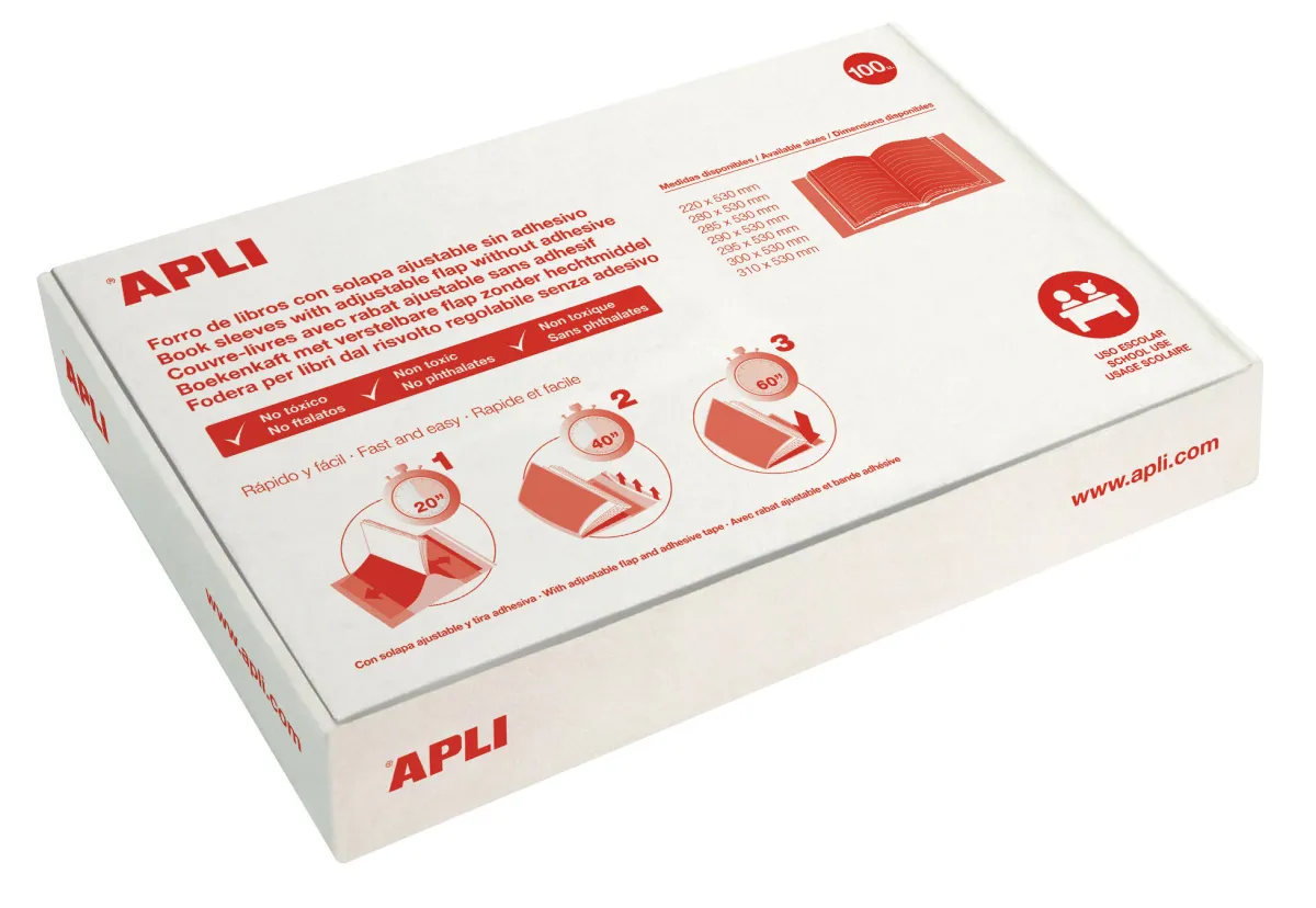 Apli Forro De Libros Con Solapa Ajustable 280Mm Pvc 130 Micras Caja 100 Ud