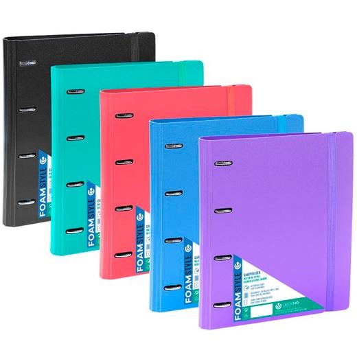 Carchivo Carpeta Anillas Mixtas 4X35Mm Carpeblock 360 Foam Style C/Recambio 100H A4 5X5 90Gr C/Goma 4 Separadores Negro