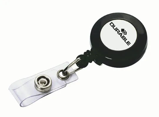 Se puede utilizar con todos los portanombres DURABLE con perforación para enganchar. Con pinza metálica en la parte posterior, enganche y cierre de botón. Longitud: 80 cm.
