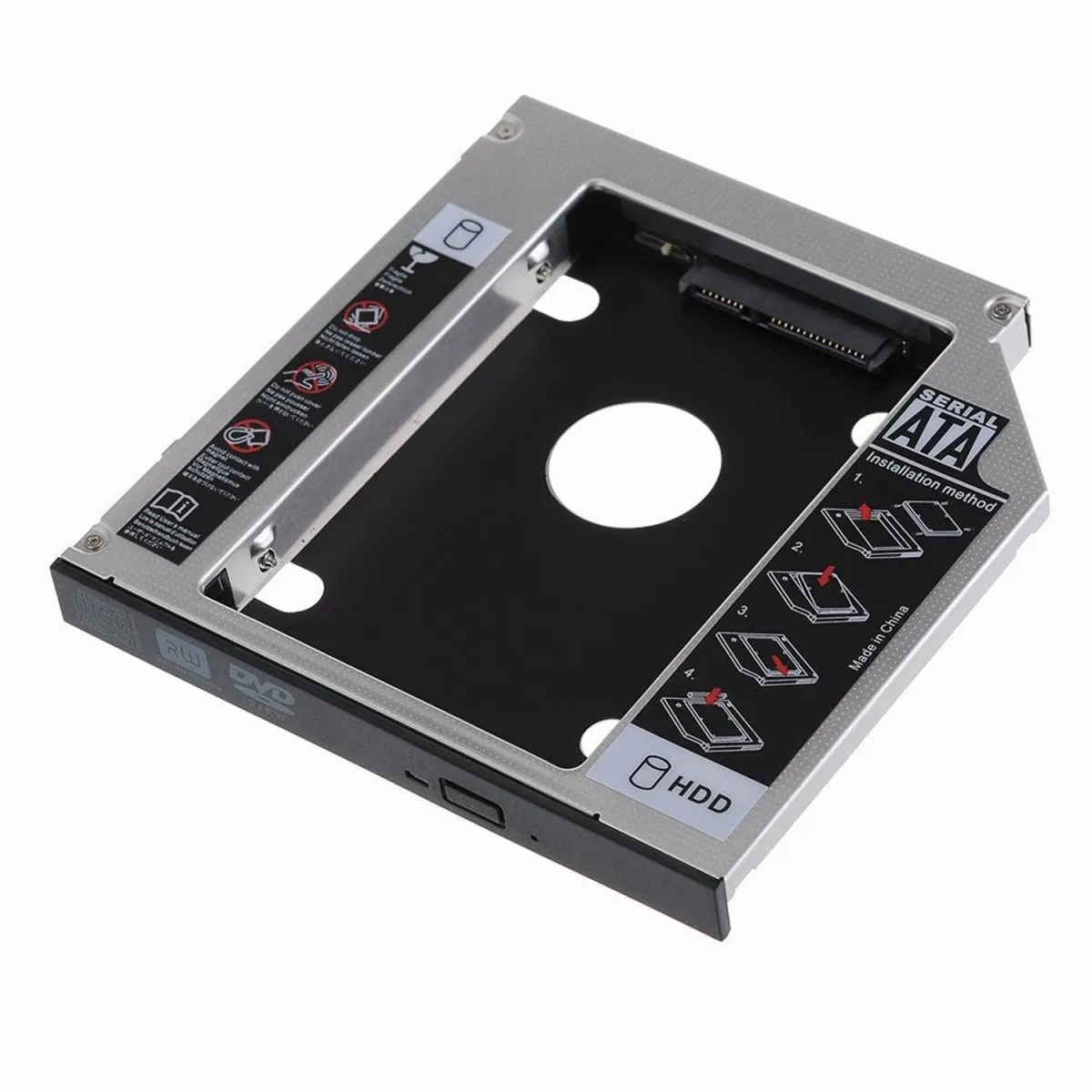 | Características | - Compatible con 2.5 pulgadas SATA de 7 mm a 12.5 mm HDD / SSD - Requisito: bahía óptica del cuaderno - Dimensiones: 129 x 128 x 12.7 mm - Material: Aluminio / ABS - Admite Windows 10, 8.1, 8, 7, Vista, XP y Linux - Compatible con SATA, SATA II y SATA III estándar - Compatible con HP, DELL, ACER, BenQ, Asus, Lenovo, Great Wall |