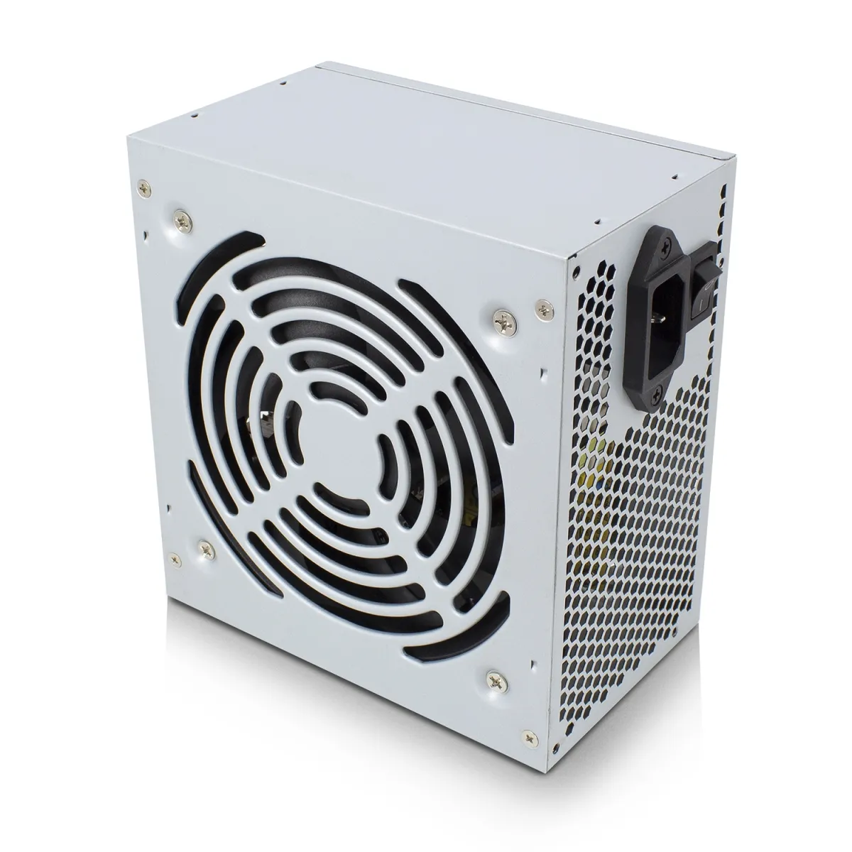 Ewent EW3909. Potencia total: 500 W, Voltaje de entrada AC: 160 - 270 V, Corriente máxima de salida (+3.3V): 6 A. Alimentador de energía para tarjeta madre: 20+4 pin ATX, Longitud del cable de alimentación de la placa base: 40 cm, Longitud del cable de alimentación SATA: 400 mm. Utilizar con: PC, Factor de forma de fuente de alimentación (PSU): ATX. Color del producto: Gris, Tipo de enfriamiento: Activo, Diámetro de ventilador: 12 cm. Certificados de conformidad: CE, REACH, Certificación: IEC62321:2013 EN 55032:2015 EN 61000-3-2:2014 EN 61000-3-3:2013 EN 55024:2010+A1:2015 EN...