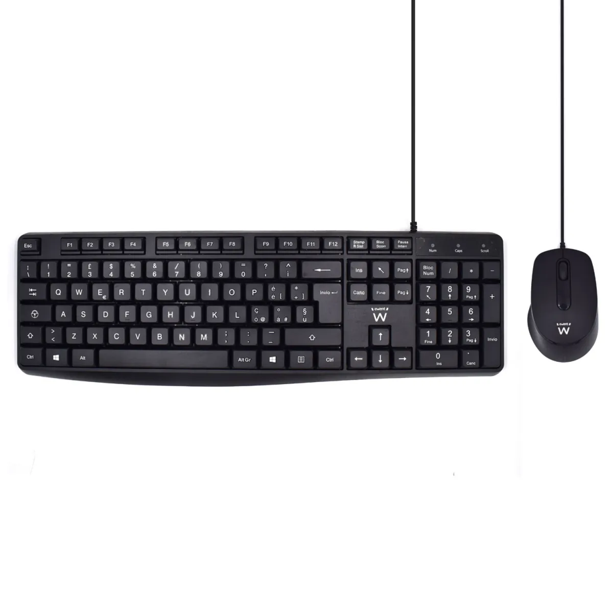 Ewent Pack Teclado + Raton Para Oficina - Teclas Silenciosas De Perfil Bajo - 1000Dpi - Disposicion Italiana Qwerty It - Cable De 1.35M - Teclas Silenciosas De Perfil Bajo - Color Negro