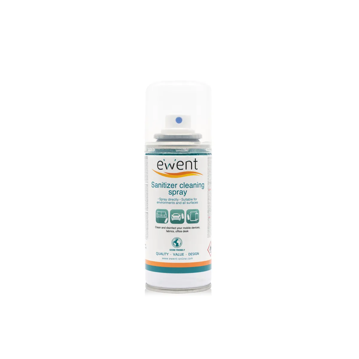 Ewent Spray Desinfectante Para Superficies - 100Ml - Formula Con Detergente - Antiolores - Color Transparente