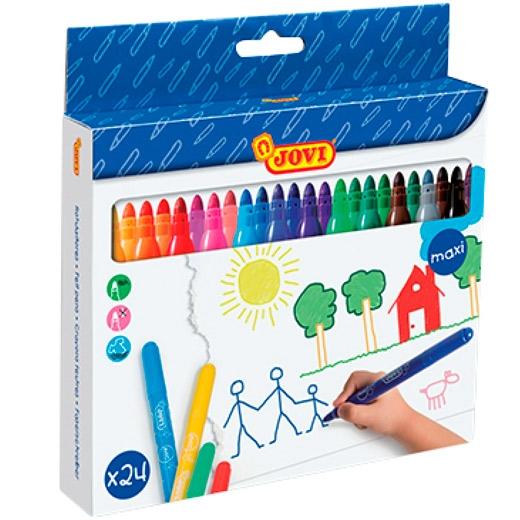 Jovi Felt Pens Estuche De 24 Rotuladores Jumbo - Punta De 5.8Mm - Amplia Variedad De Tonos - Tinta De Gran Fijacion - Capuchon De Seguridad Ventilado - Colores Surtidos