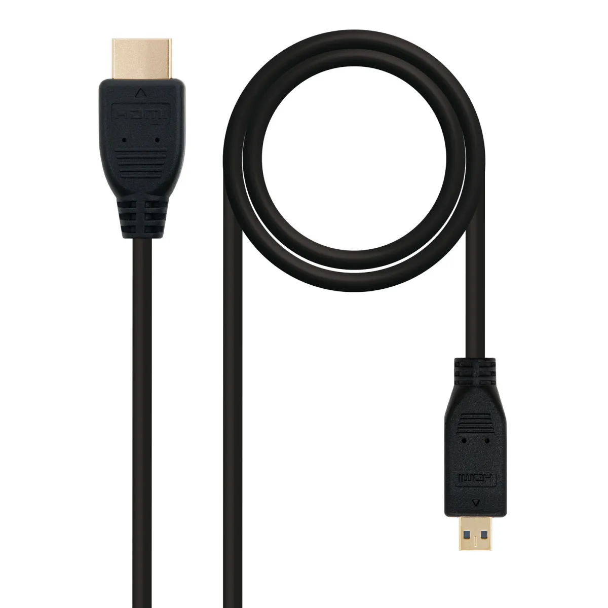 Cable HDMI alta velocidad con Ethernet (V1.4) con conector tipo A macho en un extremo y conector tipo D (Micro HDMI) en el otro.