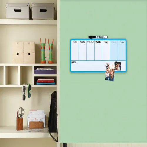 Este mini planificador semanal de pizarra es la solución perfecta para anotar recordatorios, citas y listas. Una pizarra de notas de borrado en seco de elegante diseño a dos tonos con separaciones para cada día de la semana más una sección de notas adicionales. Se incluye clip porta rotulador integrado para fijar el rotulador a la parte superior de la pizarra. Se suministra con un rotulador para pizarra blanca con borrador, 2 almohadillas de montaje adhesivas para pizarra blanca e imanes para superficies metálicas como frigoríficos.