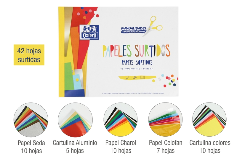 Oxford Bloc Papeles Surtidos Manualidades 42H A4 Colores Surtidos