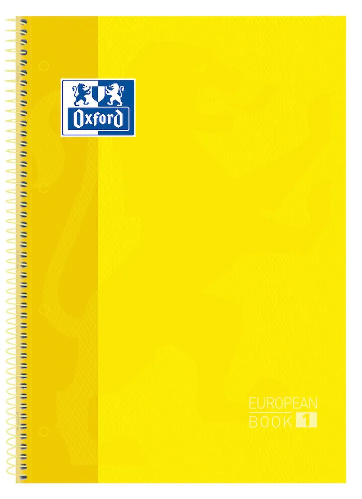 Oxford Europeanbook 1 Cuaderno Espiral Formato A4+ Cuadriculado 5X5Mm - 80 Hojas - Banda De Color - Tapa Extradura Brillante - Color Amarillo