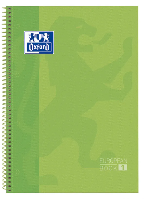 Oxford Europeanbook 1 Cuaderno Espiral Formato A4+ Cuadriculado 5X5Mm - 80 Hojas - Banda De Color - Tapa Extradura Brillante - Color Verde Manzana