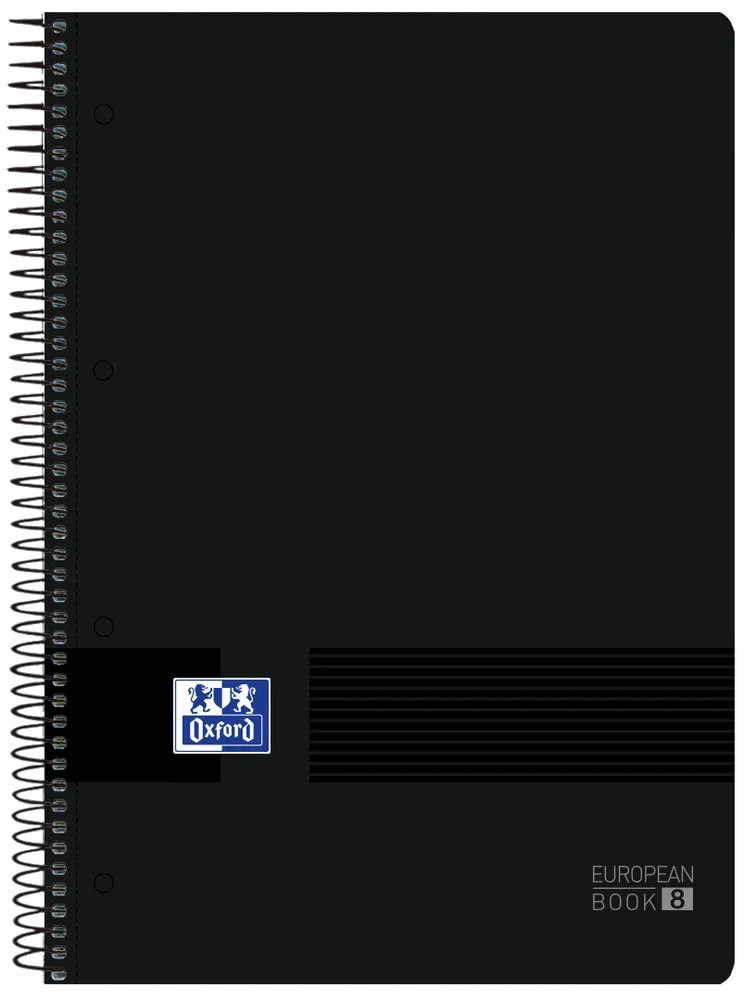 Oxford Europeanbook 8 Live & Go Cuaderno Espiral A4+ 160 Hojas Cuadricula 5X5 - 8 Bandas De Color - Tapa De Plastico Resistente - Color Negro