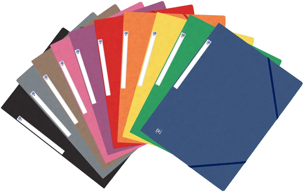 Las carpetas de gomas Oxford Top File + está compuesta por una gran variedad de colores vivos con un diseño único. Fabricada con la tecnología Multistrat, un nuevo proceso de fabricación exclusivo de cartulina con múltiples capas que ofrecen una resistencia única. Los productos de la gama Top File + tienen una gran resistencia. Esta carpeta de gomas con tres solapas está equipada con una etiqueta adhesiva en el lomo para una fácil identificación y gomas elásticas a juego.