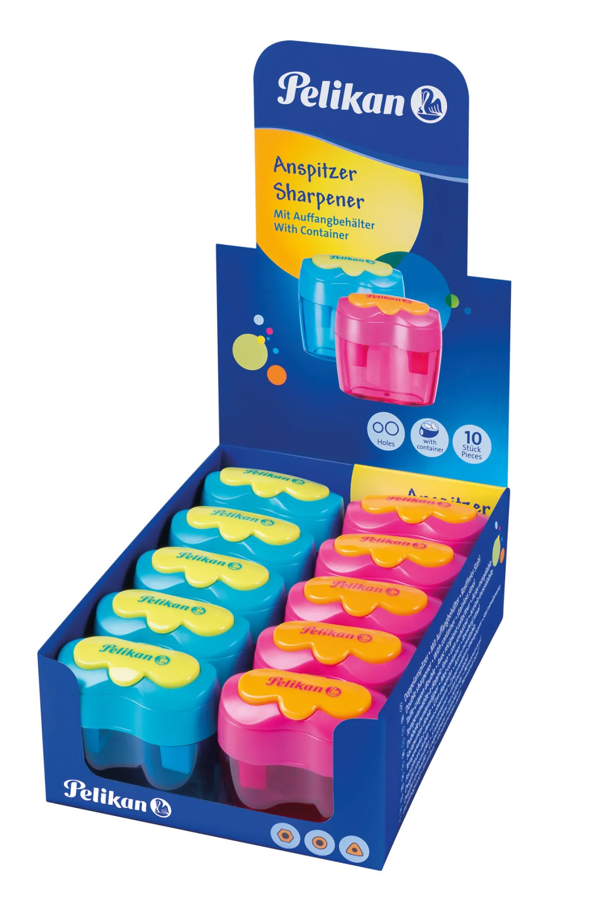 Pelikan Flower Expositor de 10 Sacapuntas 2 Orificios con Tapa