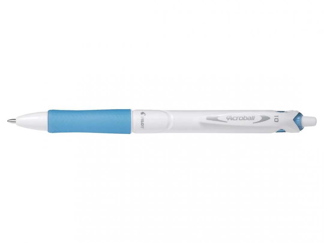 Pilot Boligrafo De Bola Retractil Acroball Purewhite - Recargable - Fabricado Con Plastico Reciclado - Punta Redonda 1Mm - Trazo 0.28Mm - Grip Ergonomico - Color Azul Claro