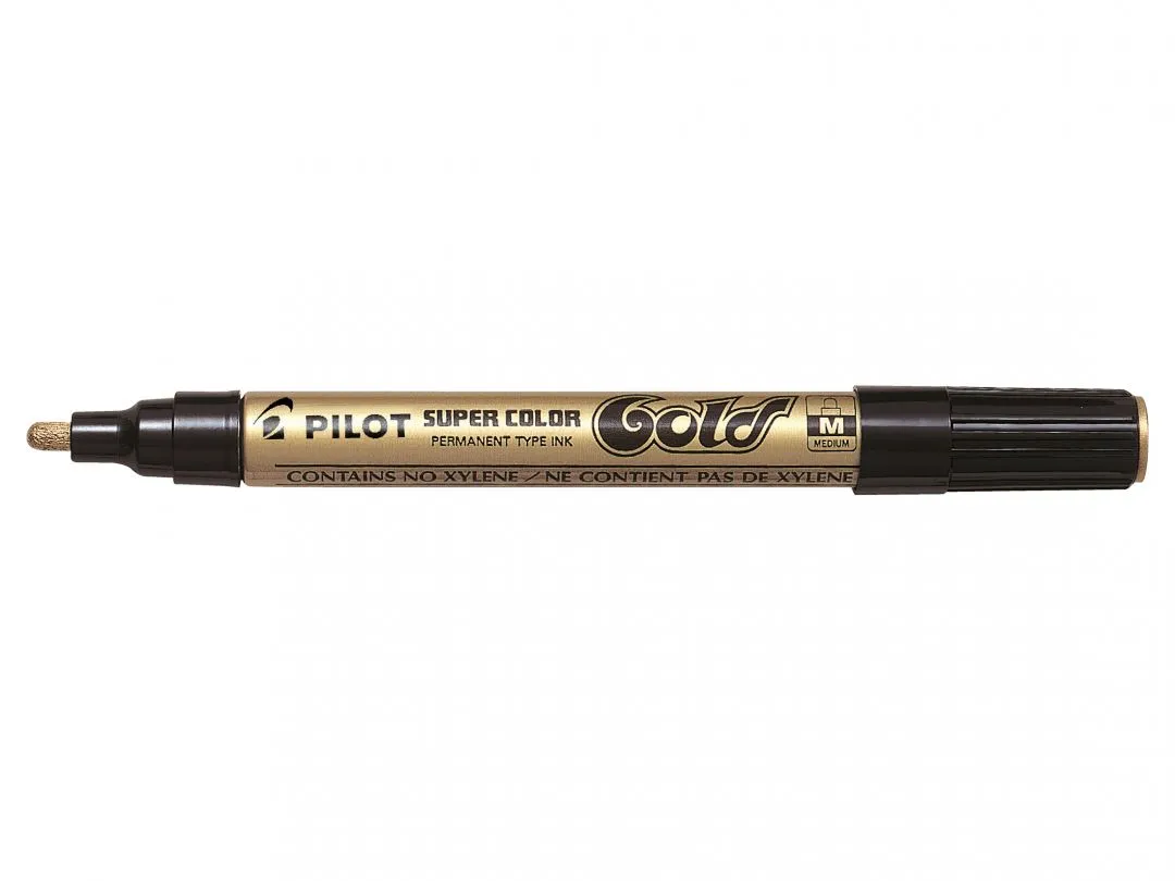 Pilot Super Color Rotulador Permanente Medio - Punta De 4,5Mm De Poliacetal - Tinta Muy Densa Y Opaca - Cuerpo Metalico - Color Oro
