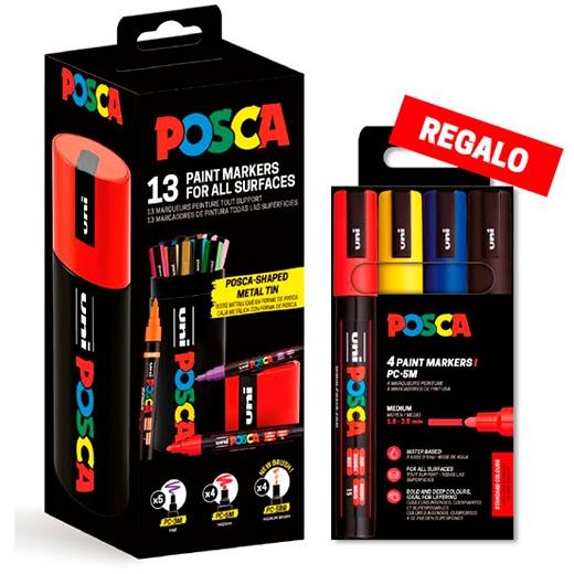 Posca Lata Metalica Con 13 Marcadores De Pintura - 4X Pc-5M, 5X Pc-3M, 4X Pc-5Br - Tinta Base Al Agua - No Permanente - Resistente A La Luz - Colores Surtidos
