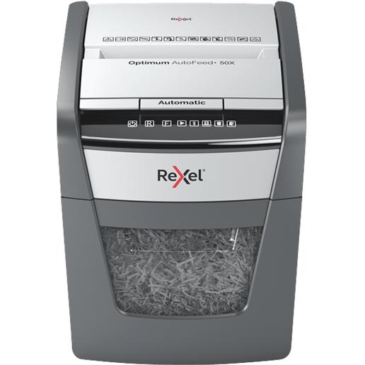 Rexel Optimum Autofeed 50X Destructora Automatica De Corte En Particulas P-4 - Alimentacion Automatica 50 Hojas Y Ranura Manual 6 Hojas - Anti Atasco - Capacidad De La Papelera 20L - Color Gris/Plata