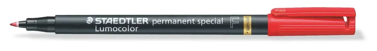 Para la mayoría de aplicaciones especiales, como superficies barnizadas, nanosuperficies, cristal óptico, cristal de laboratorio, etc. También para usar sobre silicona, film transparente y la última generación de cristales ópticos. Se adhiere a aquellas superficies especiales donde no lo hacen otros marcadores. El marcador Lumocolor permanent special F y M puede usarse también para marcar sobre tejidos y para una amplia gama de aplicaciones de exterior, p.ej., marcar elementos de jardín. No emborrona y es resistente al agua sobre casi todas las superficies. Seca en segundos, ideal para usuarios zurdos. Colores intensos, inodoro. Extremadamente resistente a la luminosidad (sobre superficies lisas: negro durante 3 años, rojo durante 1 año. sobre papel mucho más tiempo). El color negro es res