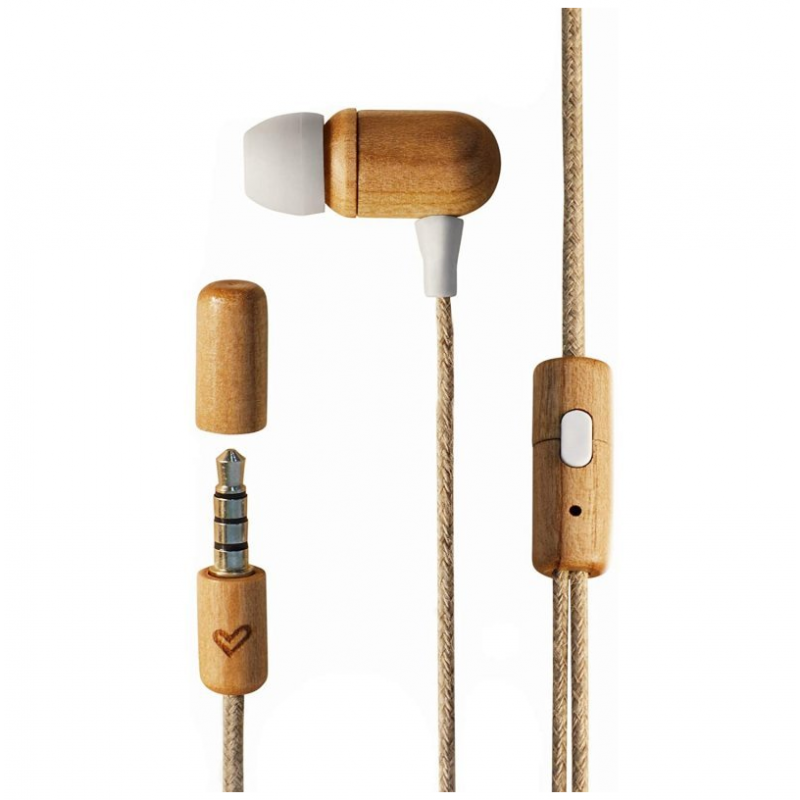 Auriculares intrauditivos elaborados en materiales sostenibles como madera y cáñamo. Disponen de un sonido equilibrado, agudos nítidos y graves potentes gracias al ajuste dinámico. Con micrófono incorporado.