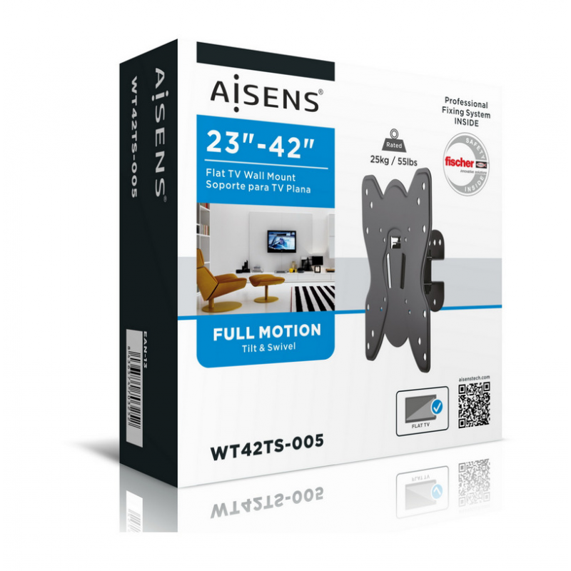 Aisens WT42TS-005 es un soporte giratorio e inclinable para monitor/TV 25kg de 23?-42?. Fabricado con acero de alta resistencia y pintado con pintura electrostática para un acabado perfecto.