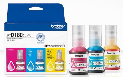 Pack de 3 botellas de tinta original Brother BTD180CLVAL de alta calidad.