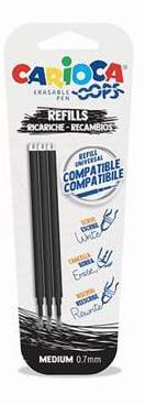 Carioca Oops Pack de 3 Recambios para Boligrafo Borrable - Tinta Termo Sensible - Punta de 0.7mm - Compatibles con Boligrafo Oops