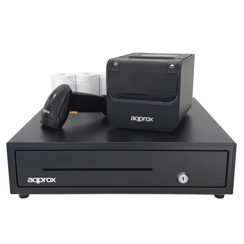 Kit Tpv Approx Cajon Appcash01 Negro + Scan Appls22 Sin Peana + Imp. Term. Pos80Am-Usb + Papel