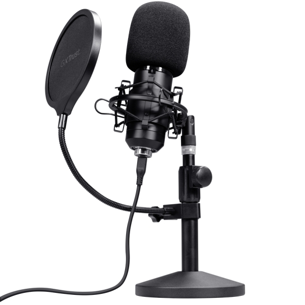 Microfono Trust Usb Gxt 269 Emita Ii Cardioide Soporte Metal Antivibracion Mute Negro